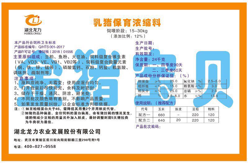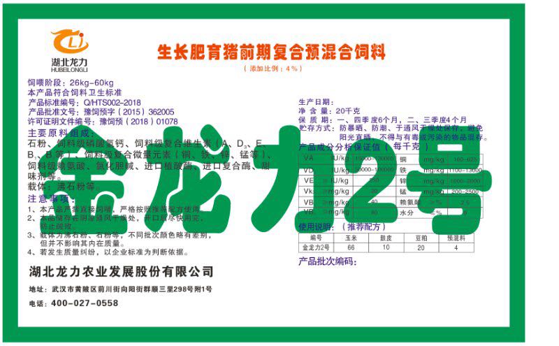 湖北龍力農業(yè)發(fā)展股份有限公司坐落于武漢市黃陂區(qū)前川街向陽街群順三里298號附1號。公司成立于2014年6月,公司自成立以來把“創(chuàng)全球最大養(yǎng)豬綜合服務”為企業(yè)愿景。致力于打造教保料品牌”作為公司發(fā)展的明確目標。公司一直致力于豬營養(yǎng)的研究和開發(fā),積極與國內外高校和科研機構合作,推廣養(yǎng)豬技術、動物營養(yǎng)新概念,向世界農牧企業(yè)學習與合作。公司采用國內先進的生產工藝,選擇高精度電子配料秤,高均勻度、無殘留混合機等先進設備....